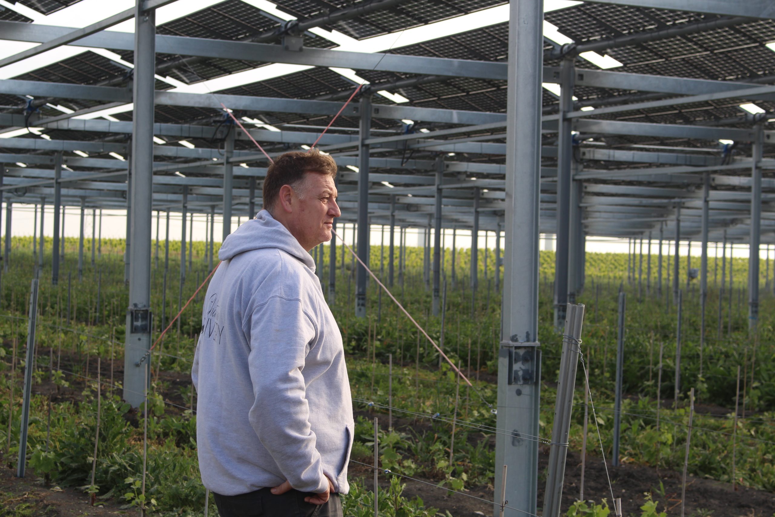 « Lors de la plantation, il faisait très chaud et nous étions bien mieux sous les panneaux que dans la zone témoin. Cela montre clairement le bénéfice, à la fois pour la vigne et pour les personnes qui y travaillent. »